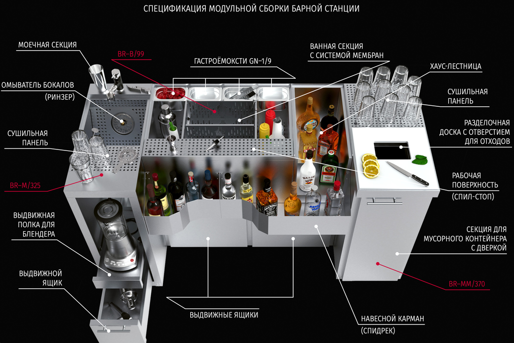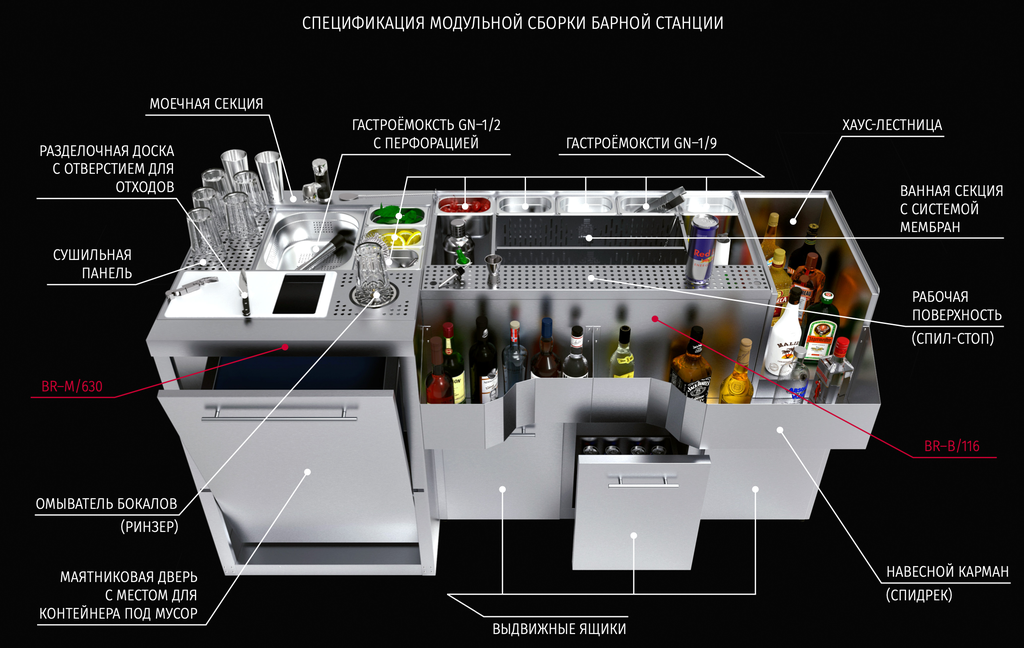 Этот раздел работает под запрос и каждый запрос индивидуален, просчитывается под любые габариты и потребности вашего бара.